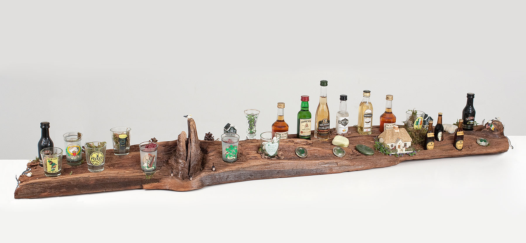 The driftwood pieces that you see above is an idea I came up with when I was decorating my own bar in my basement. How many times do we ask ourselves, or look for things to dress up a bar, or any setting around liquor. Having an Irish background, I decided I embarked on this idea and just let my imagination run away with me.